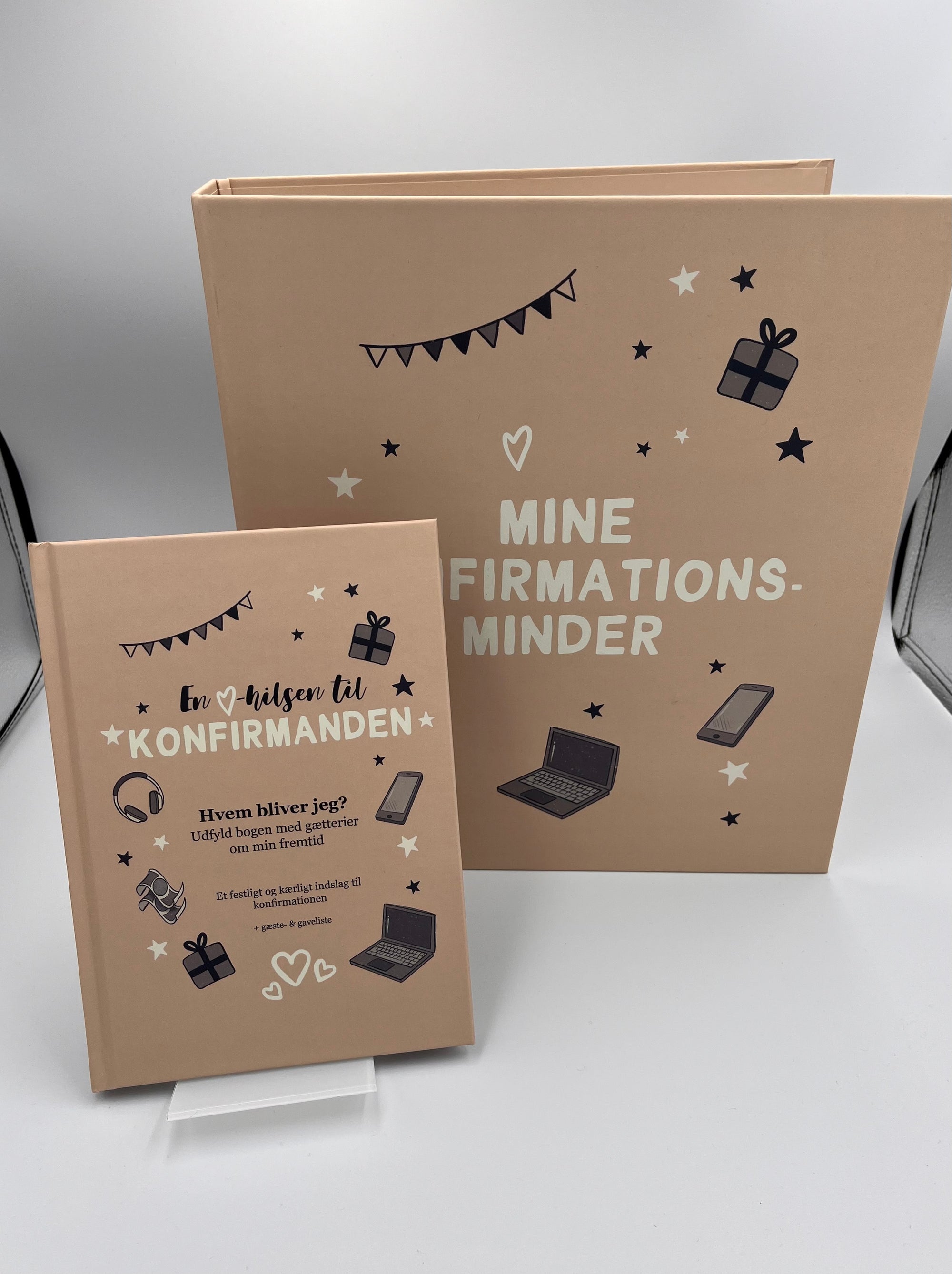 Køb vores smukke gæstebog til konfirmanden inkl. et ringbind med tomme faneark hvor du kan samle alle konfirmationsminderne.